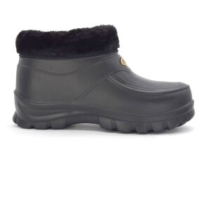 Gummistiefeletten mit Fellfutter sind ideal für kalte und nasse Tage. Sie bestehen aus besonders leichtem Material, das ein angenehmes Gehen ermöglicht, während das weiche Fell innen die Füße warm hält und ein behagliches Tragegefühl schafft. Die wasserdichte Oberfläche schützt zuverlässig vor Regen und Schnee, und die praktische Form erleichtert das An- und Ausziehen.